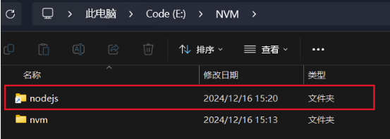 在你安装完 node,并使用后。最开始创建的 nodejs 文件夹就会被标记为 node 的下载路径,通过 nvm 下载的 node 都会存储在这里。