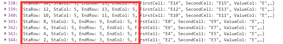 主要的数据是StaRow,StaCol,EndRow,EndCol,分别代表被合并单元格的起始位置。首先计算合并单元格的列的位置,代码如下:
