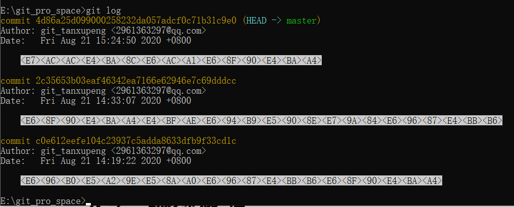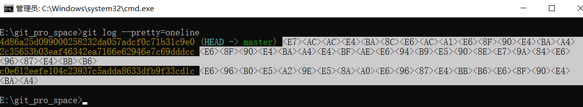 可以看到我们上一次的回退点。使用命令:git reset --hard 4d86a25 ,再次查看,三个分支又可以在显示