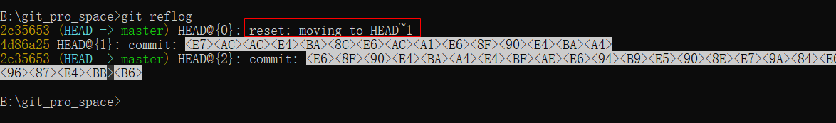 再次查看的时候,我上一个版本只提交了两次。如果此时发现回退版本回退过头了,想要撤销回来,那这个时候因为回退之前的版本已经删除,则我们需要去看删除日志去找到之前的版本ID