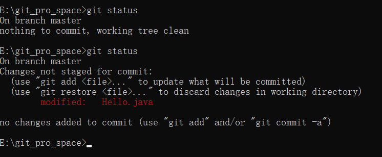 在工作区中发生改变,撤销。此时已经修改了一个文件,已经有状态显示。