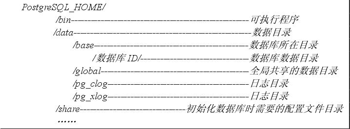 1、PostgreSOL在安装后,其目录组织结构如下图: