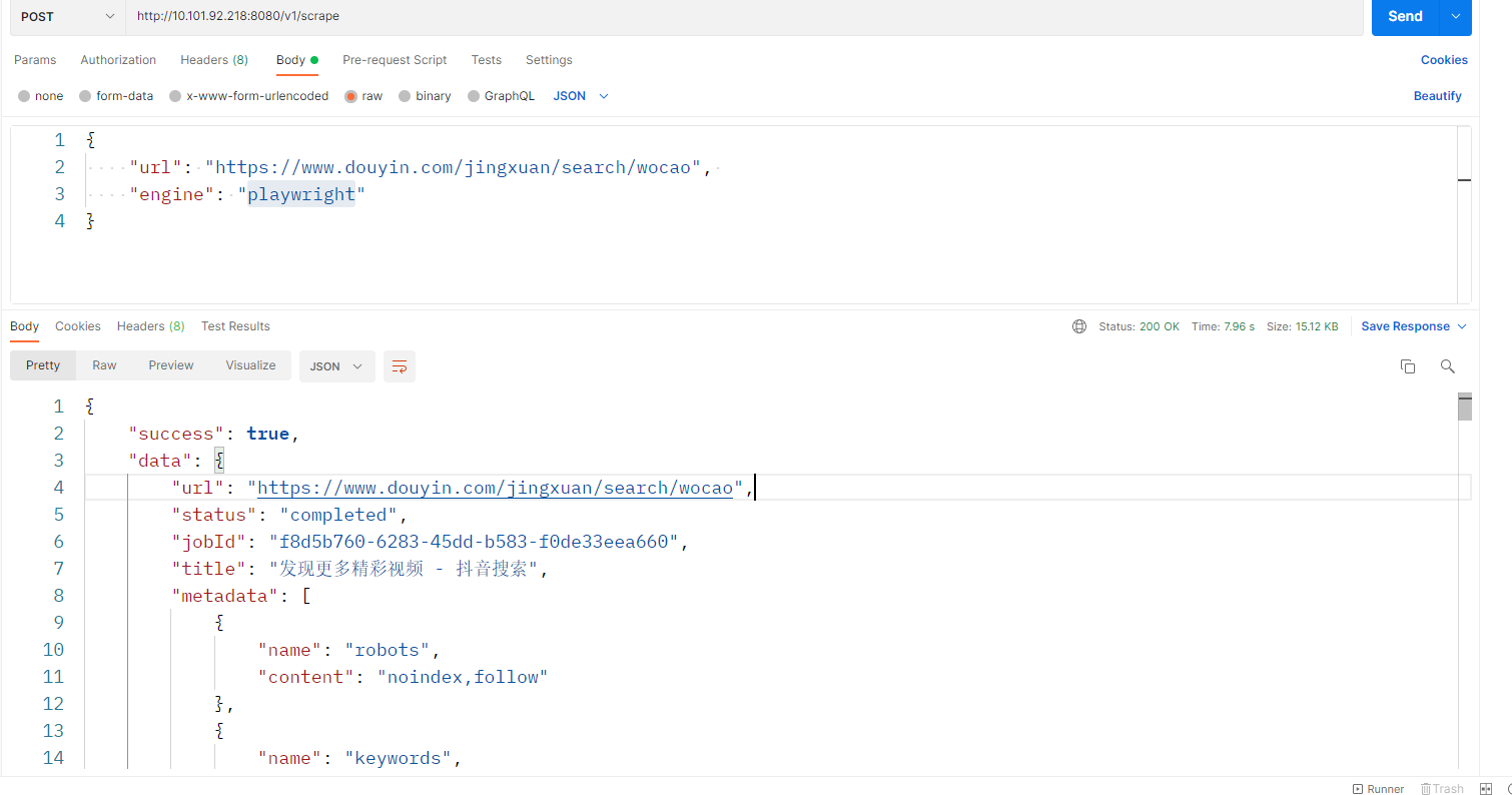 1. 爬取一篇文章内容,返回 LLM 友好的markdown内容 • 爬取网页接口:http://127.0.0.1:8080/v1/scrape • 请求方法:POST • 请求参数: