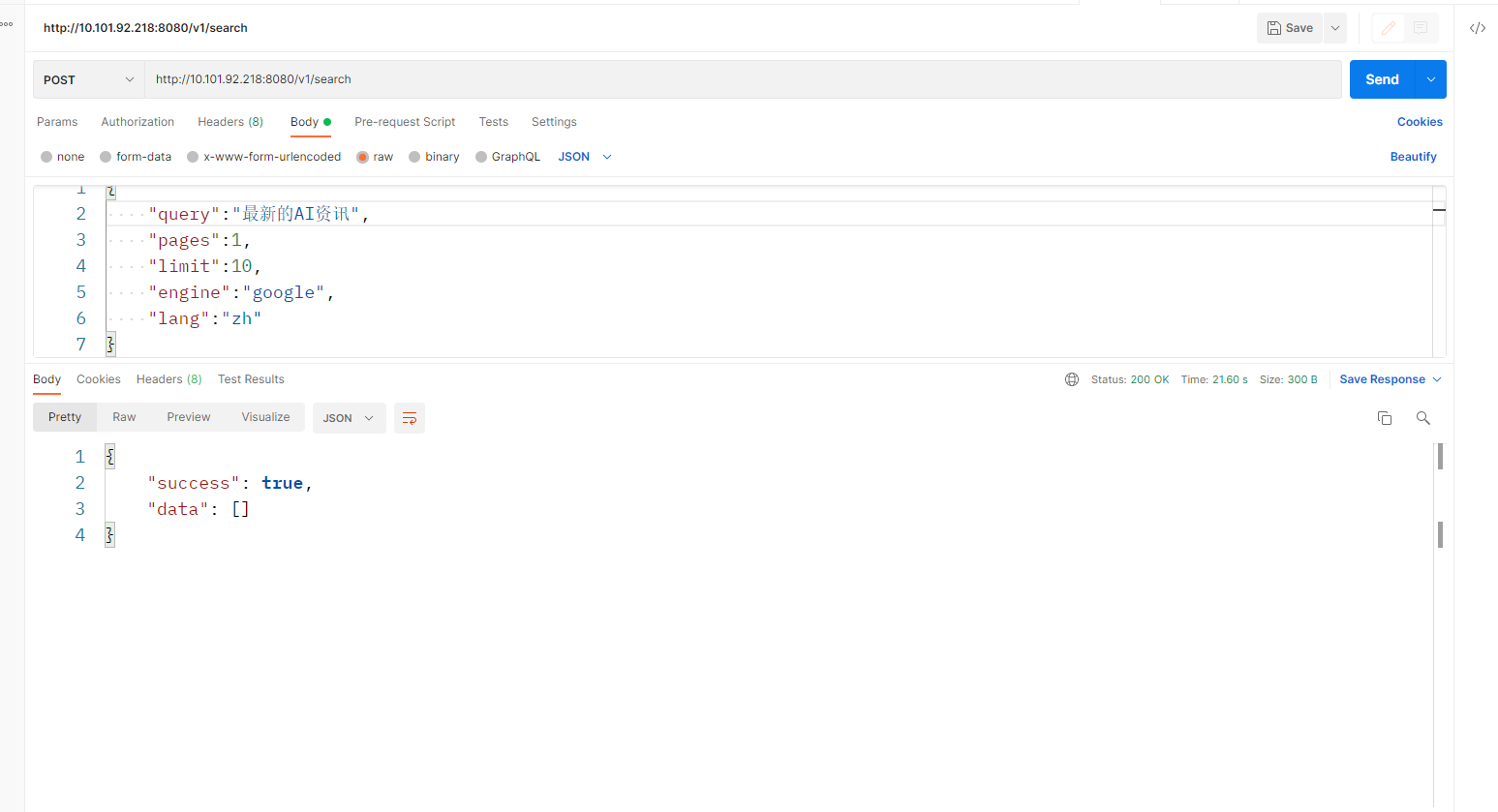 - • 爬取网页接口:http://127.0.0.1:8080/v1/search