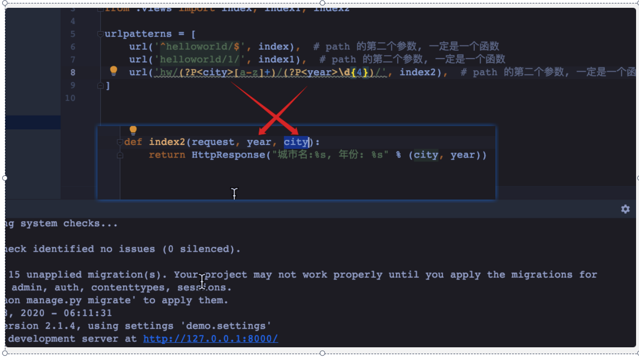 2.格式2:指定正则的名字:/hello/(?P[a-z]+)/(?P\d+)