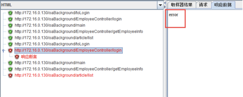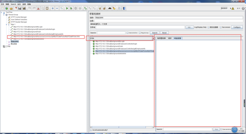 2.执行一次线程,进入查看结果树,查看响应数据(建议:HTML下查看),在计划中删除不需要的请求;