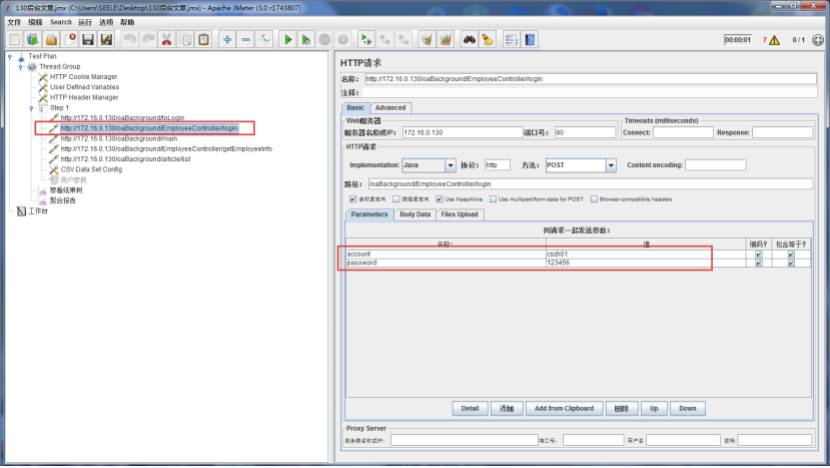 在使用Jemeter做压力测试的时候,往往需要参数化用户名,密码以到达到多用户使用不同的用户名密码登录的目的,这个时候我们就可以使用参数化登录。