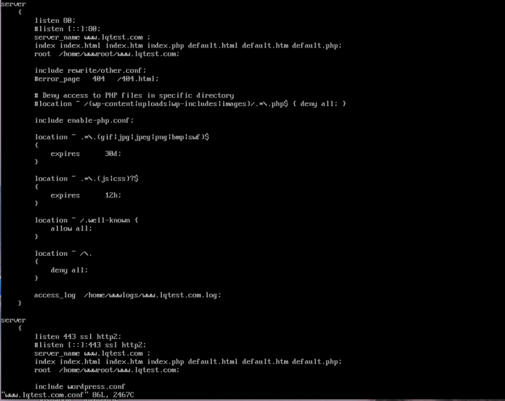 步骤三:上传web代码到网站目录;寻找vhost文件夹中(/usr/local/nginx/conf/vhost/配置的conf文件),图片中/home/wwwroot/www.lqtest.com即为网站目录