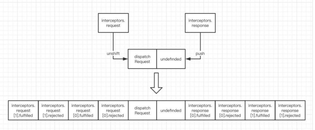 //请求拦截器 将请求拦截器的回调 压入到 chains 的前面 request.handles = []