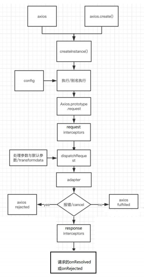 - request(config) ==> dispatchRequest(config) ==> xhrAdapter(config)