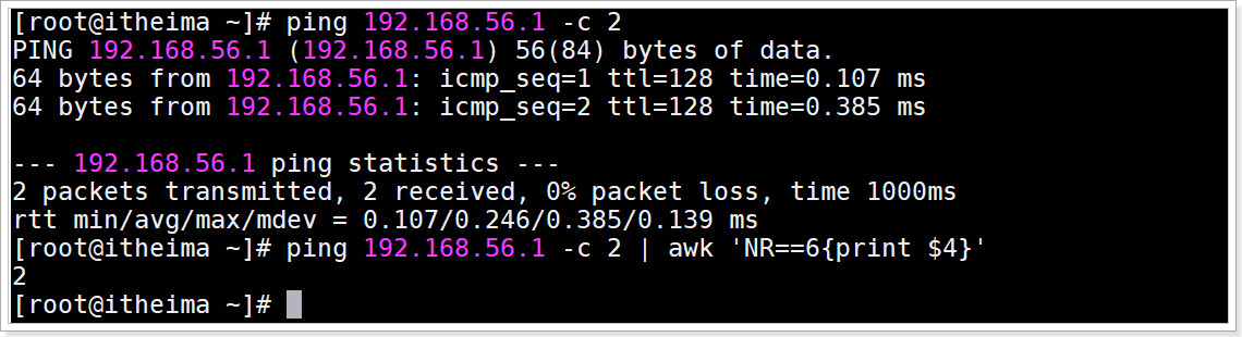 # 使用ping命令发送2个包测试, 并获取返回接收到包的个数
