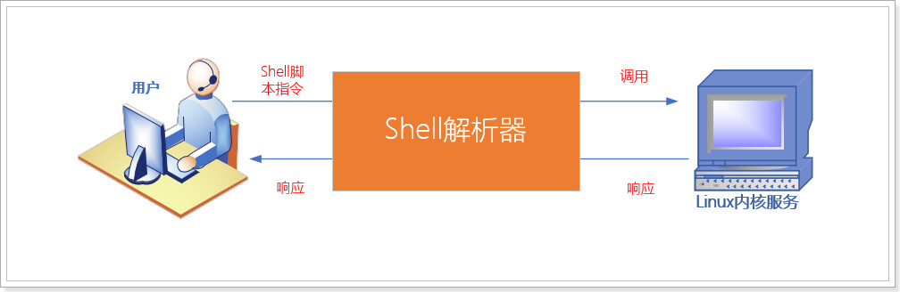 通过编写Shell命令发送给linux内核去执行, 操作就是计算机硬件. 所以Shell命令是用户操作计算机硬件的桥梁,