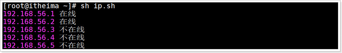 问题: 扫描192.168.56.1到192.168.56.254之间ip的是否存活, 并输出是否在线?