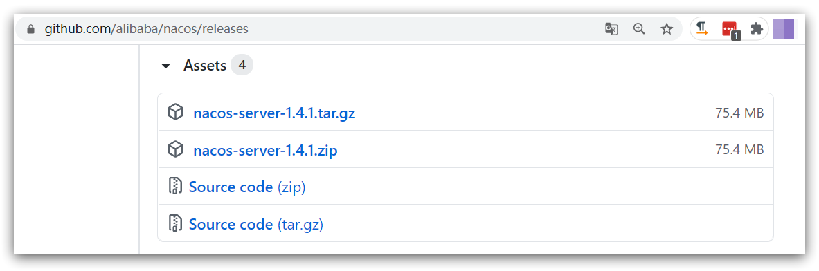 GitHub的Release下载页:https://github.com/alibaba/nacos/releases