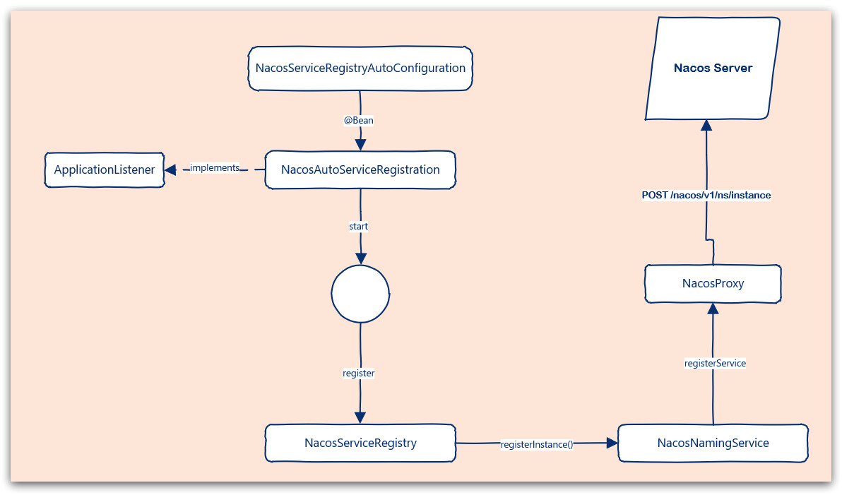 Nacos提供了服务注册的API接口,客户端只需要向该接口发送请求,即可实现服务注册。
