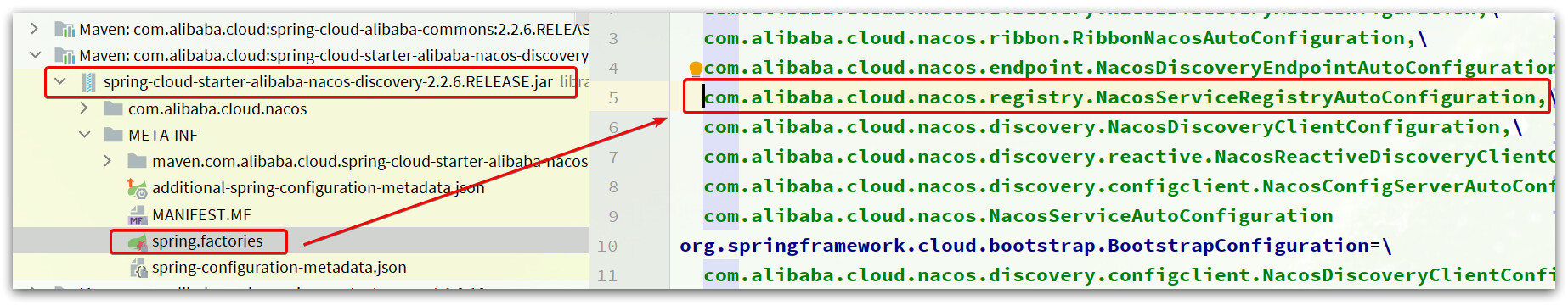 因为Nacos的客户端是基于SpringBoot的自动装配实现的,我们可以在nacos-discovery依赖: