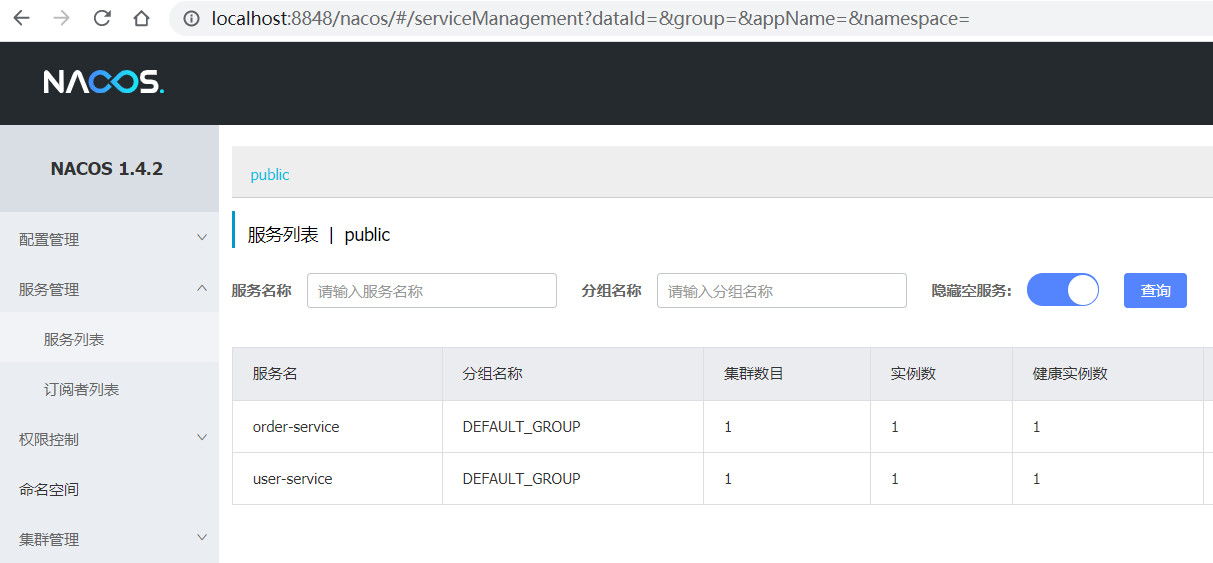 将order-service和user-service服务启动后,可以查看nacos控制台: