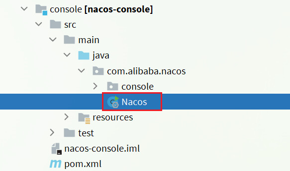 nacos服务端的入口是在console模块中的Nacos类: