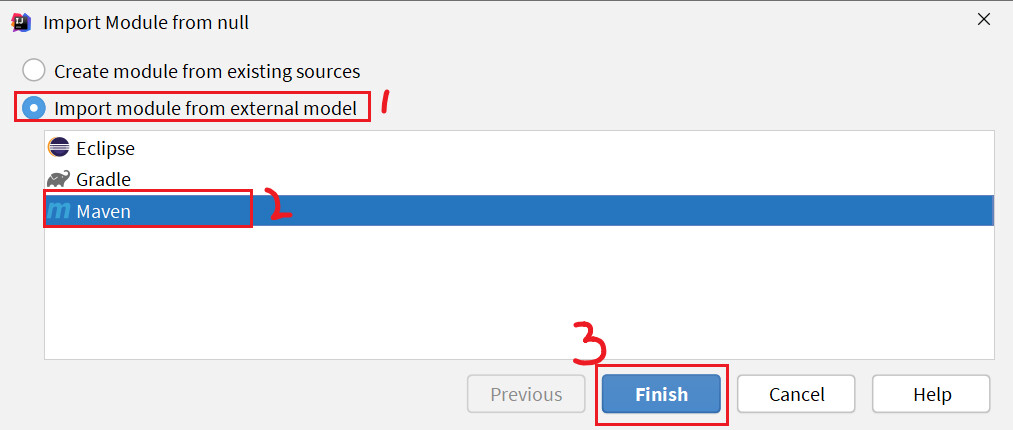 然后选择maven模块,finish: