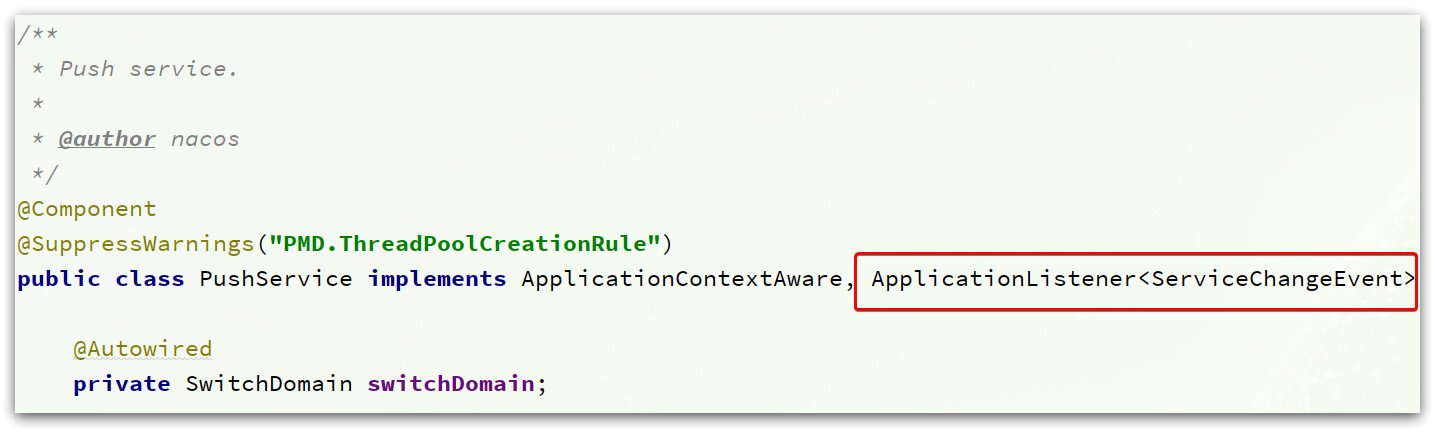 PushService类本身实现了ApplicationListener接口:
