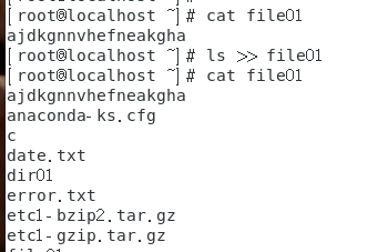 语法2:有输出的指令 >> 文件路径 //追加输出,在文件末尾输出内容,若指定文件不存在则自动创建该文件