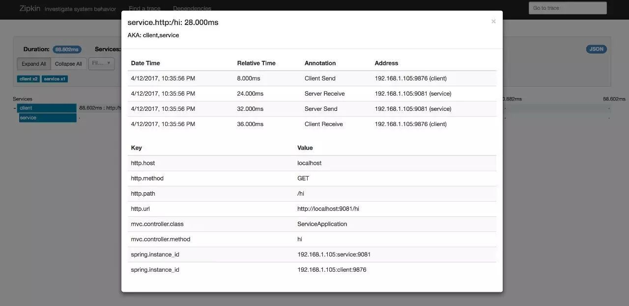 所有请求在进入API网关请求头就带上一个traceid,用来标识请求并记录请求开始处理时间和转发时间等,在服务调用之间也会带上traceid并记录所有的请求时间和信息,这样所有经过的服务都会记录到到请求,最后通过可视化工具提供服务跟踪查询。