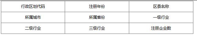 数据名称:800万+中国区县行业-新注册企业信息
