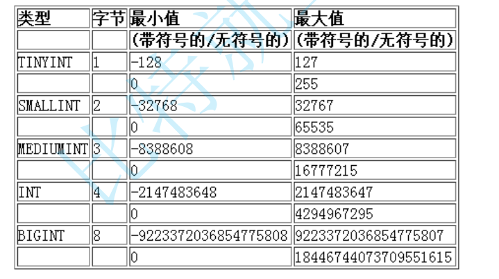 1、在MySQL中,整型可以指定是有符号的和无符号的,默认是有符号的。