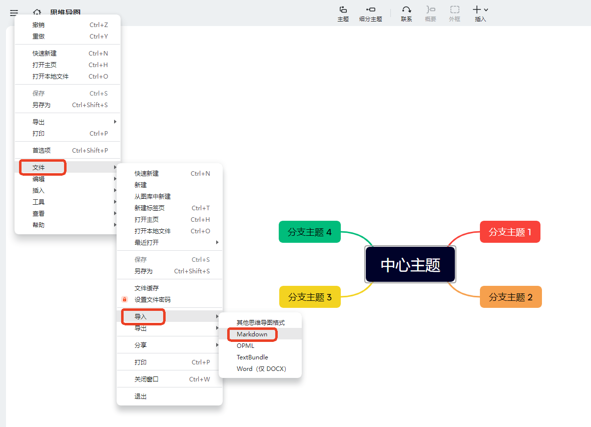 打开Xmind工具,选择“文件 - 导入 - Markdown”,将生成的Markdown格式用例导入到Xmind中。