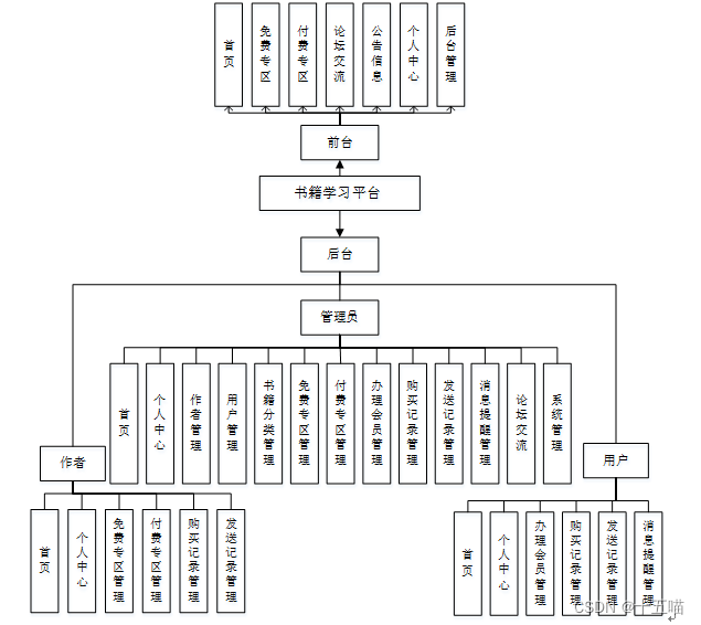 首先,论文一开始便是清楚的论述了平台的研究内容。其次,剖析平台需求分析,弄明白“做什么”,分析包括业务分析和业务流程的分析以及用例分析,更进一步明确平台的需求。然后在明白了平台的需求基础上需要进一步地设计平台,首要包罗软件架构模式、整体功能模块、数据库设计。本任务软件架构选择B/S模式和java技巧,总体功能模块运用自顶向下的分层思想。再然后就是实现平台并进行代码编写构建功能。论文的最后章节总结一下自己完成本论文和开发本项目的心得和总结。凭借书籍学习平台将会使书籍学习各个方面的工作效率带来实质性的提升。