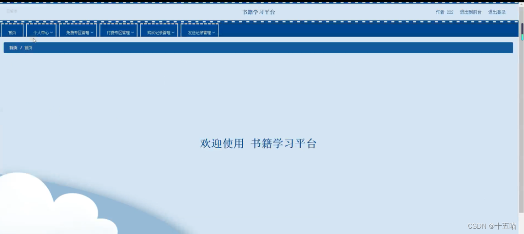 通过作者登录进入书籍学习平台能够对首页、个人中心、免费专区管理、付费专区管理、购买记录管理、发送记录管理等进行相应操作,如图5-14所示。