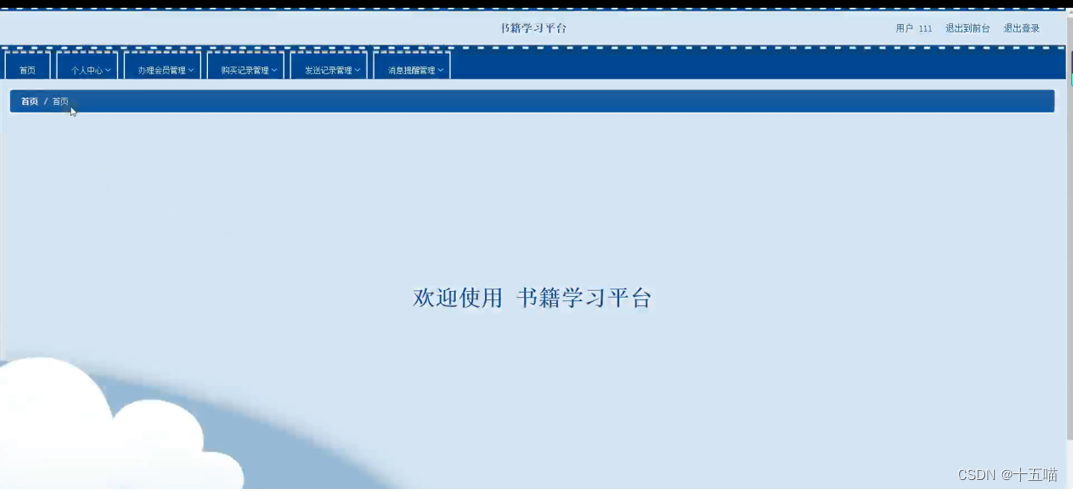 用户登录进入书籍学习平台可以对首页、个人中心、办理会员管理、购买记录管理、发送记录管理、消息提醒管理等进行相应处理,如图5-14所示。