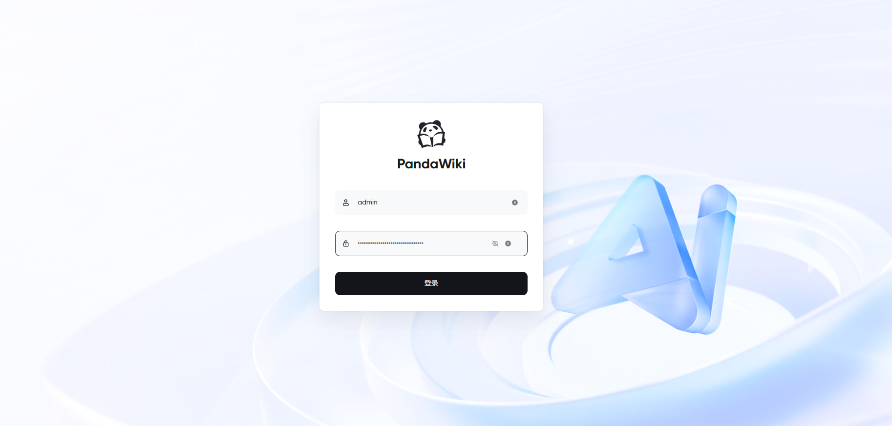 使用浏览器打开上述内容中的 “访问地址”,你将看到 PandaWiki 的控制台登录入口。