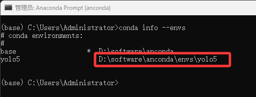 1、打开anaconda,输入以下命令,查询环境所在文件夹位置