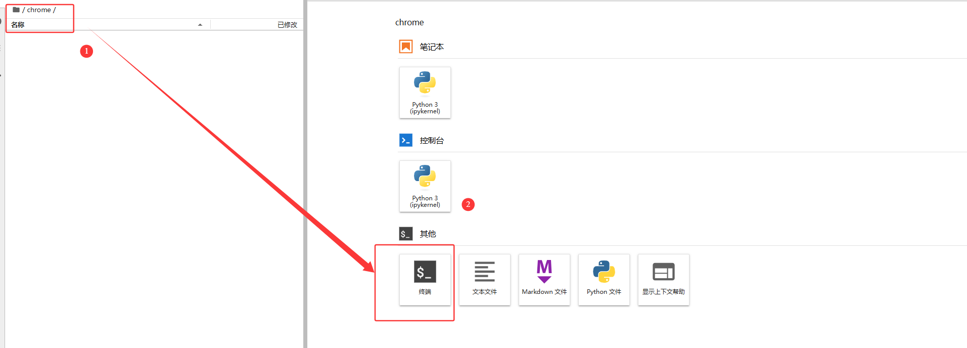 (1)新建一个文件夹用于存放 Google Chrome 的安装包,进入该文件夹后打开终端进行操作。