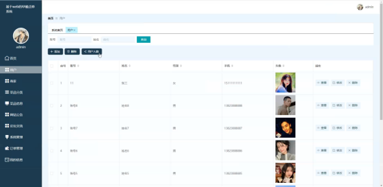 管理员进入主页面,主要功能包括对等进行操作。管理员主页面如图5-6所示: