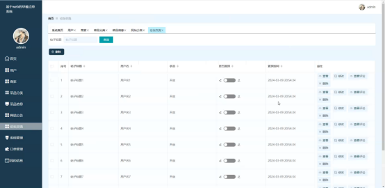 论坛交流:帖子标题、内容、父节点、用户ID、用户名、头像、状态、置顶、置顶时间;