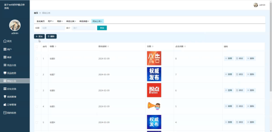 网站公告:标题、简介、封面、内容、发布时间、点击次数、最近点击时间;