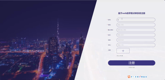 在注册流程中,用户在Vue前端填写必要信息(如用户名、密码等)并提交。前端将这些信息通过HTTP请求发送到Java后端。后端处理这些信息,检查用户名是否唯一,并将新用户数据存入MySQL数据库。完成后,后端向前端发送注册成功的确认,前端随后通知用户搞定注册。这个过程实现了新用户的材料收集、验证和存储。系统注册页面如图5-2所示: