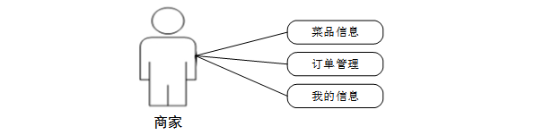 商家登录系统所涉及到的机制主要有菜品信息、订单管理、我的信息等功能。商家用例如图3-2所示。