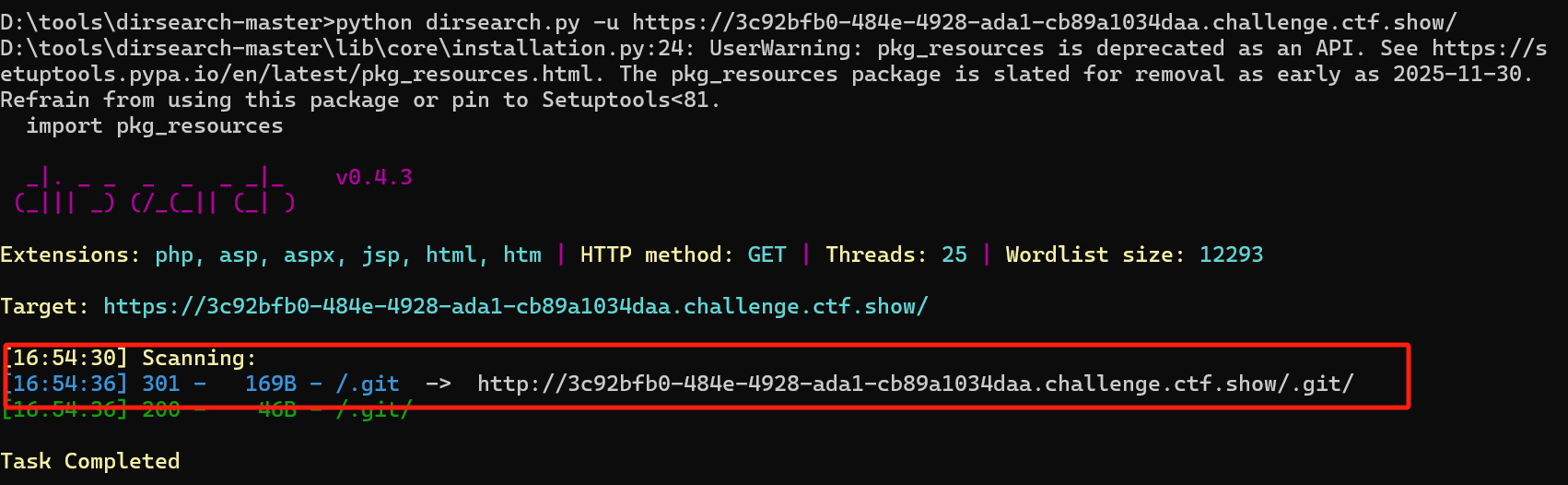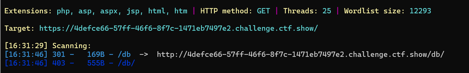 根据提示,这里进行目录扫描,使用常用的目录扫描工具dirsearch