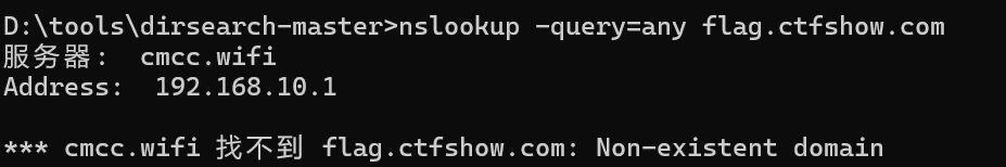 题目提示:域名其实也可以隐藏信息,比如flag.ctfshow.com 就隐藏了一条信息