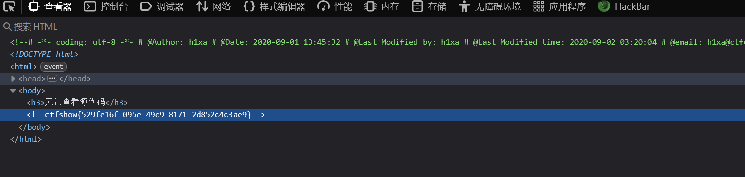 根据提示,无法右键查看源代码,F12查看能够获得flag
