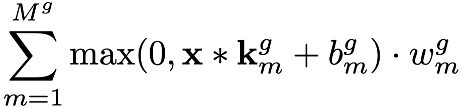 其中,_m、b_m、w_m 分别是第 m个卷积核、偏置和信号权重,符号∗ 表示卷积操作 ,符号 ⋅ 表示标量-向量乘法,σ 是逐元素的 Sigmoid 函数,即