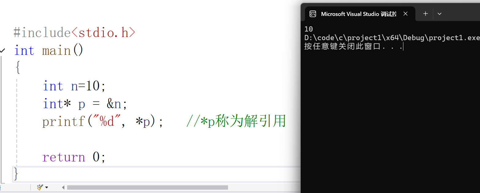 访问指针所指内存当中的数据的操作称为解引用;运用符号 * 来访问。
