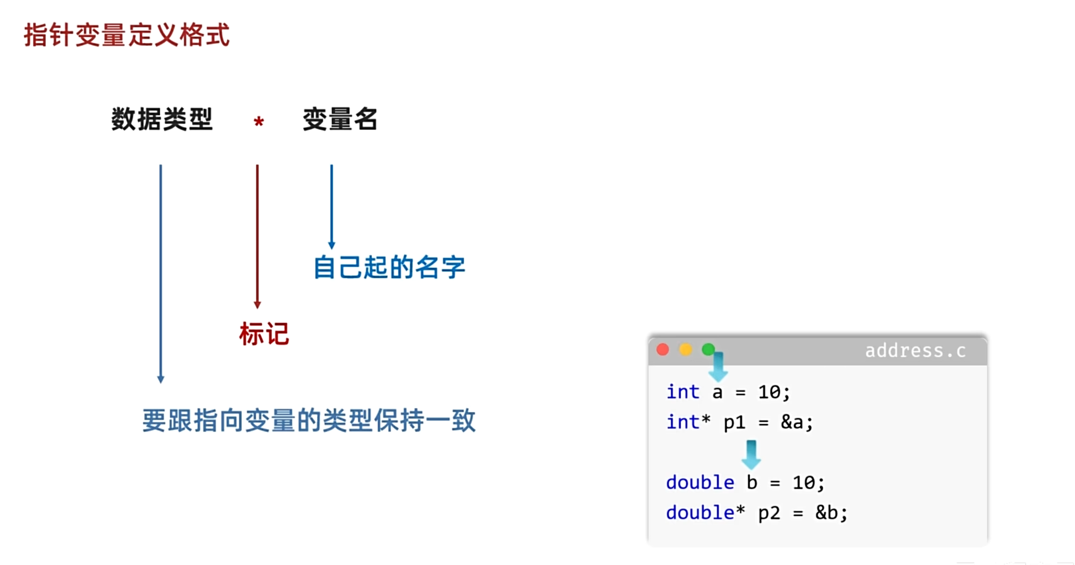 2.指针变量的名字(不带*)。