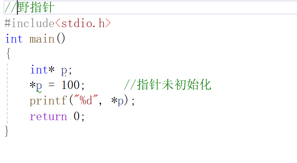 - 指针未初始化(未指向有效的内存地址)。