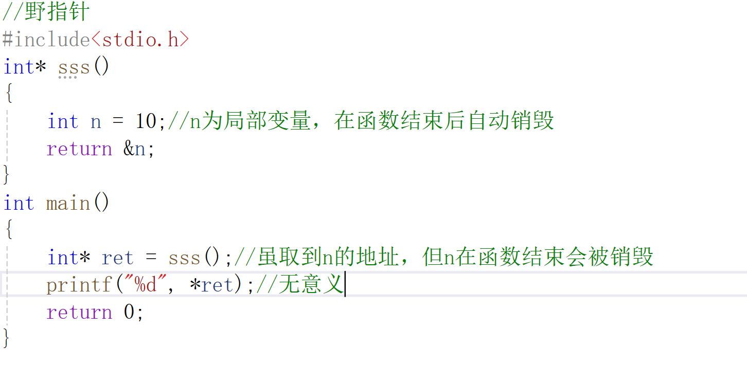 - 指针超出变量作用域(如指向局部变量的指针在函数返回后被运用)。