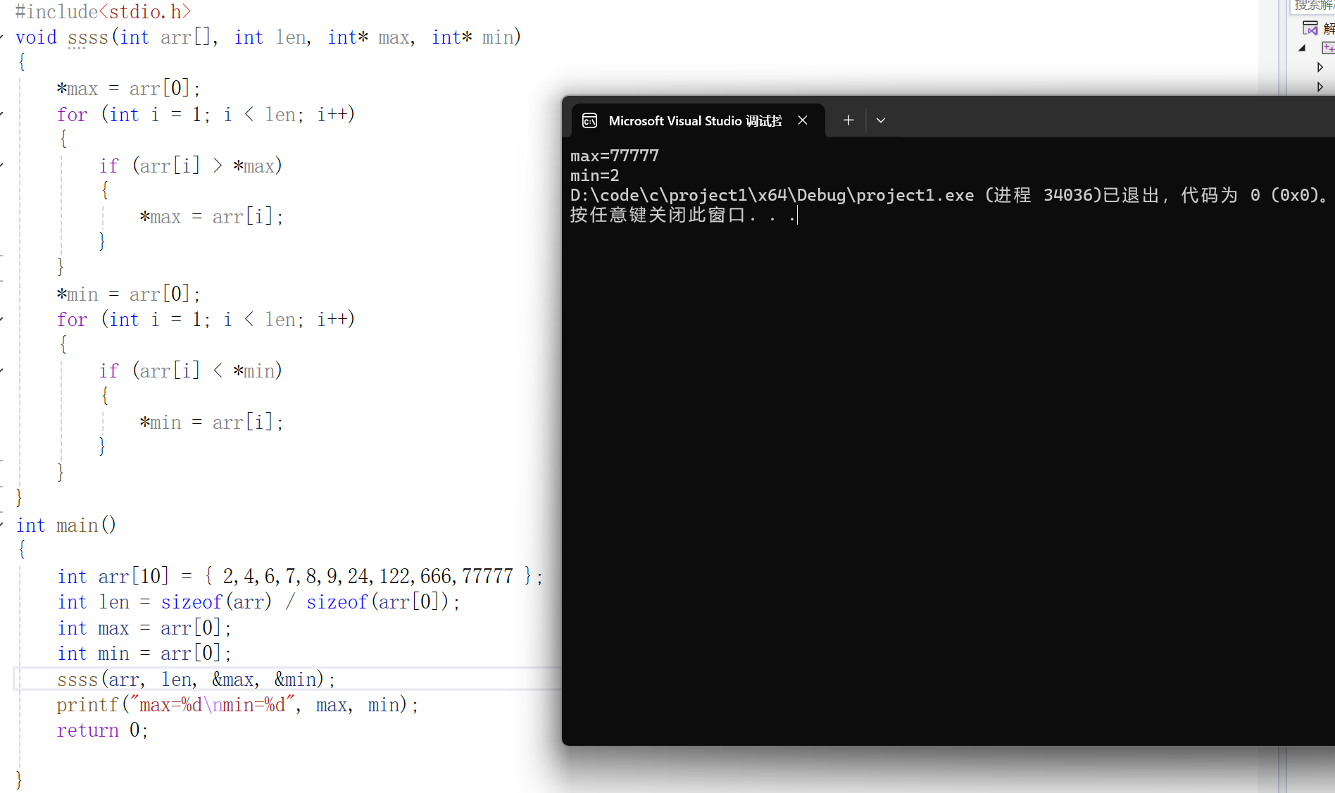 示例习题:返回数组中最大值与最小值