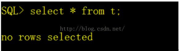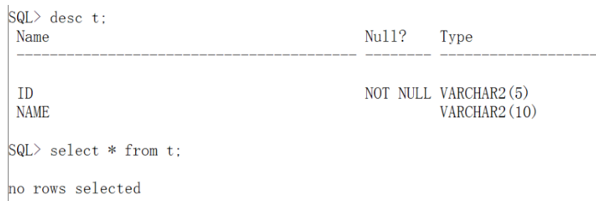 比方如今登录数据库用户是sys,用例如以下命令查询t表,其内没有数据信息,例如以下图: